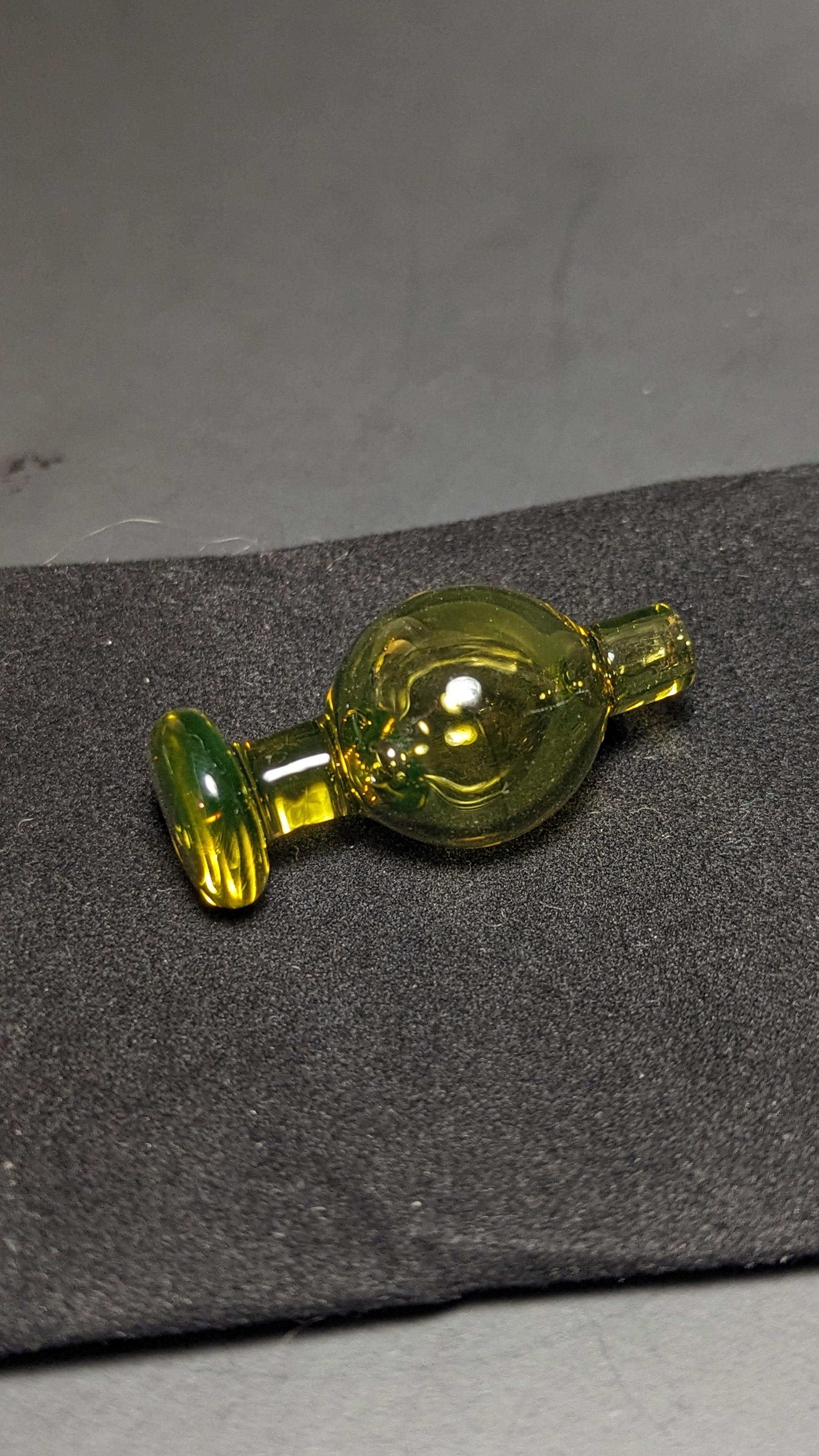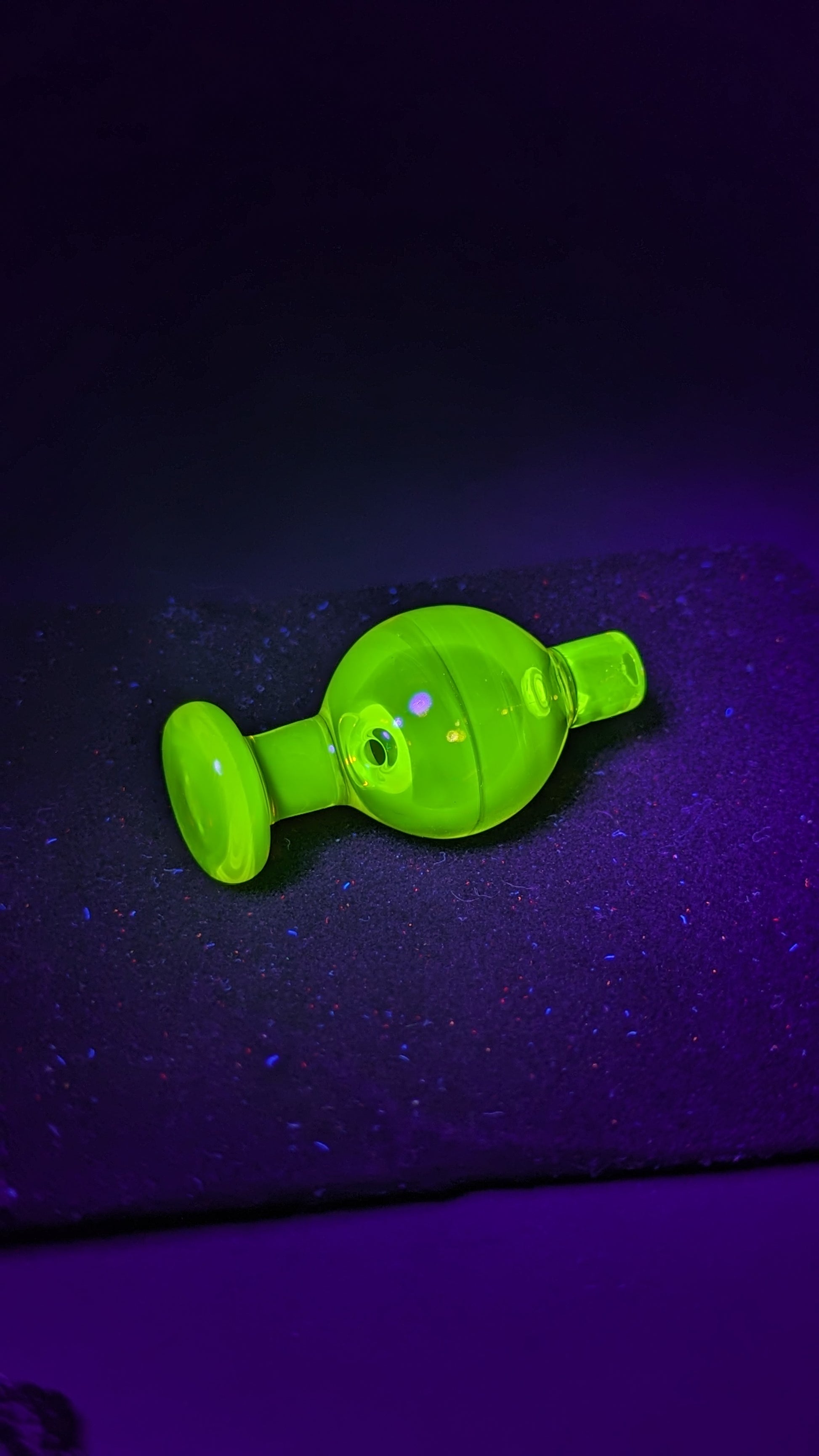 Glassblown borosilicate carb cap made out of UV reactive Citrine, roughly 18-21mm in diameter.