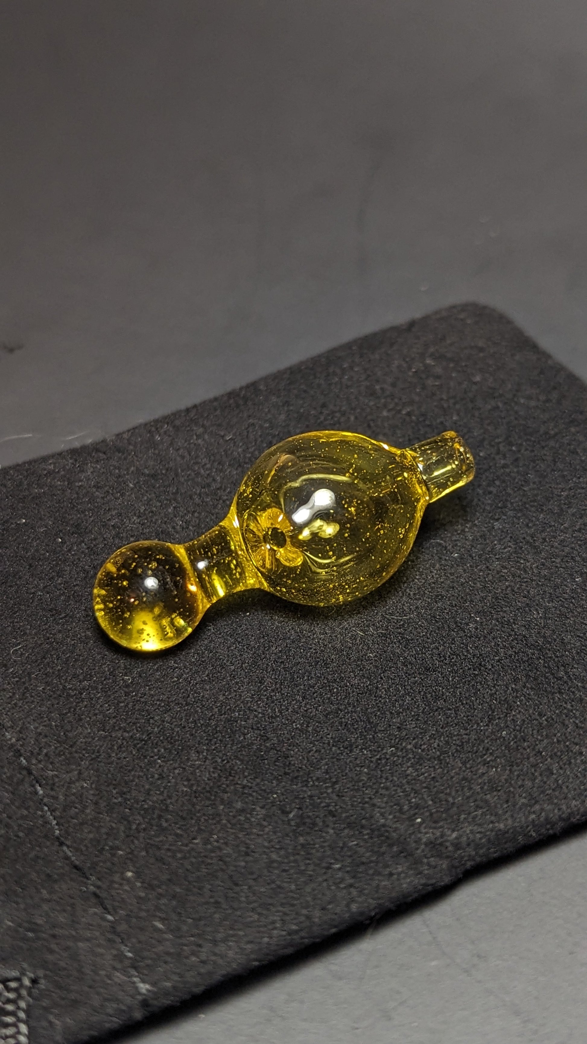 Glassblown borosilicate carb cap made from CFL reactive Terps, roughly 18-21mm in diameter.