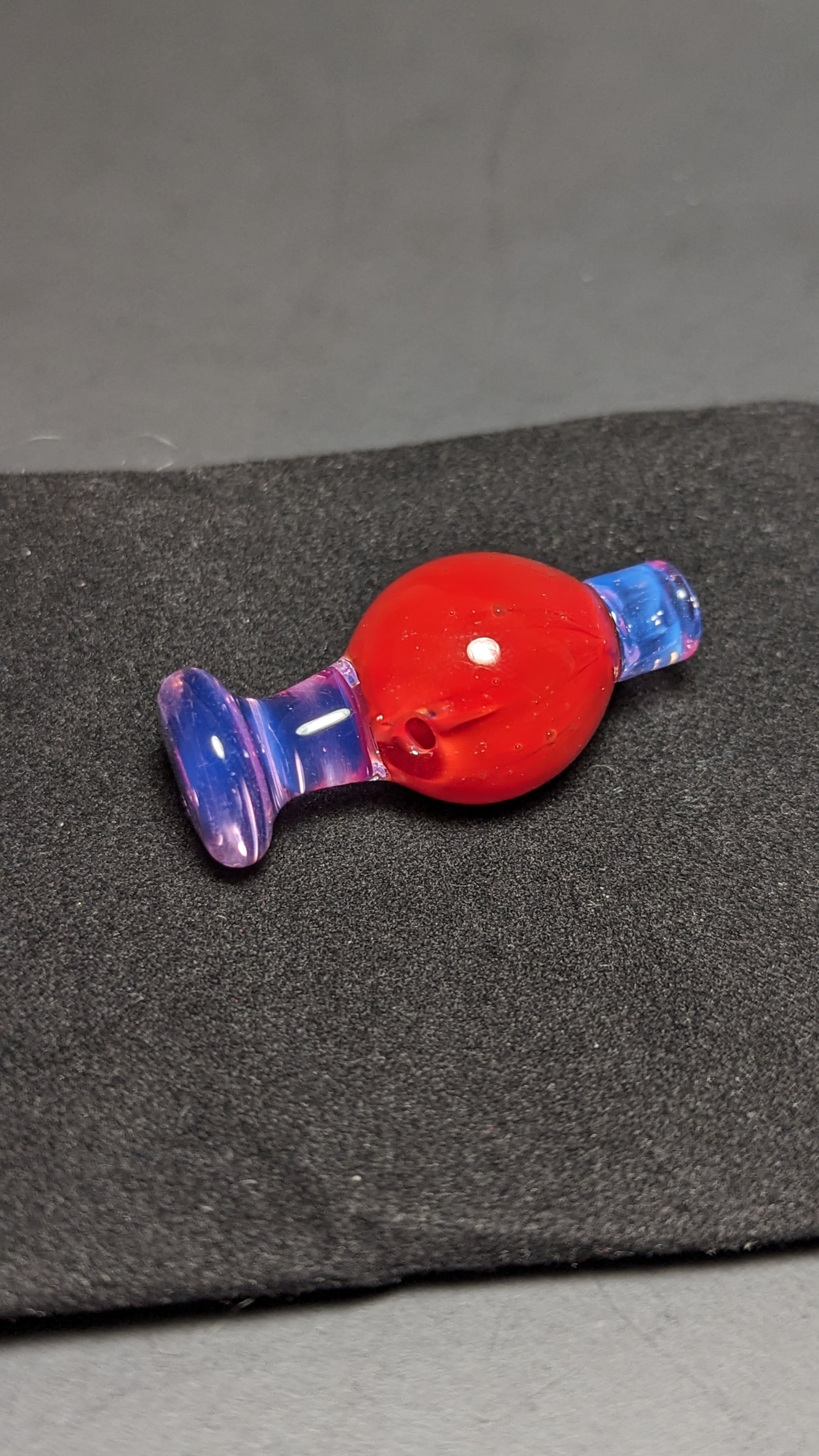 Glassblown borosilicate carb cap made from Lucid and Red Crayon, roughly 18-21mm in diameter.