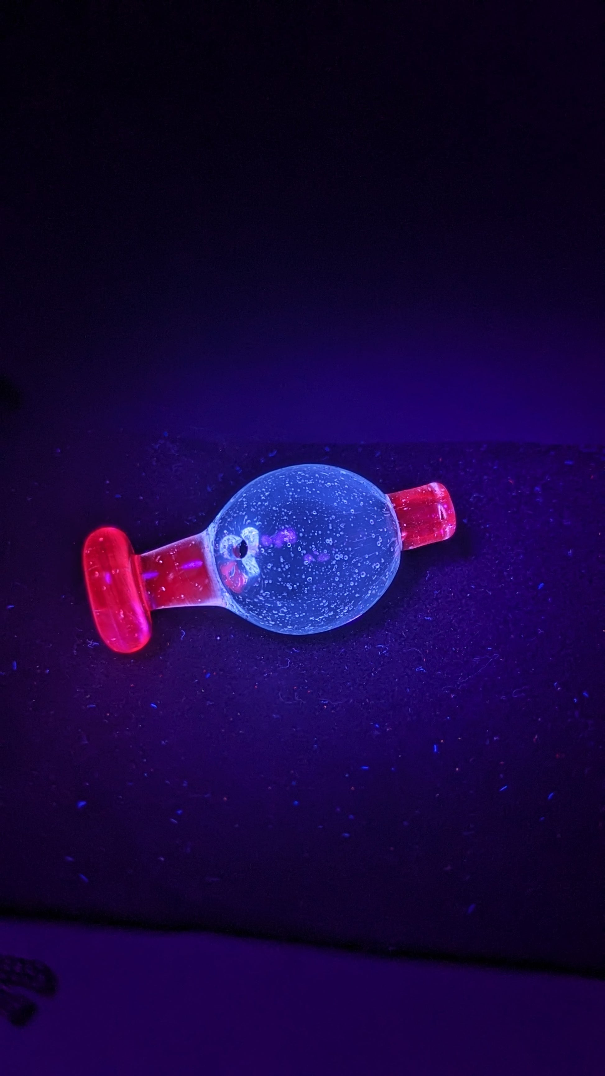Glassblown borosilicate carb cap made from UV reactive Lucy and BluV, roughly 18-21mm in size.