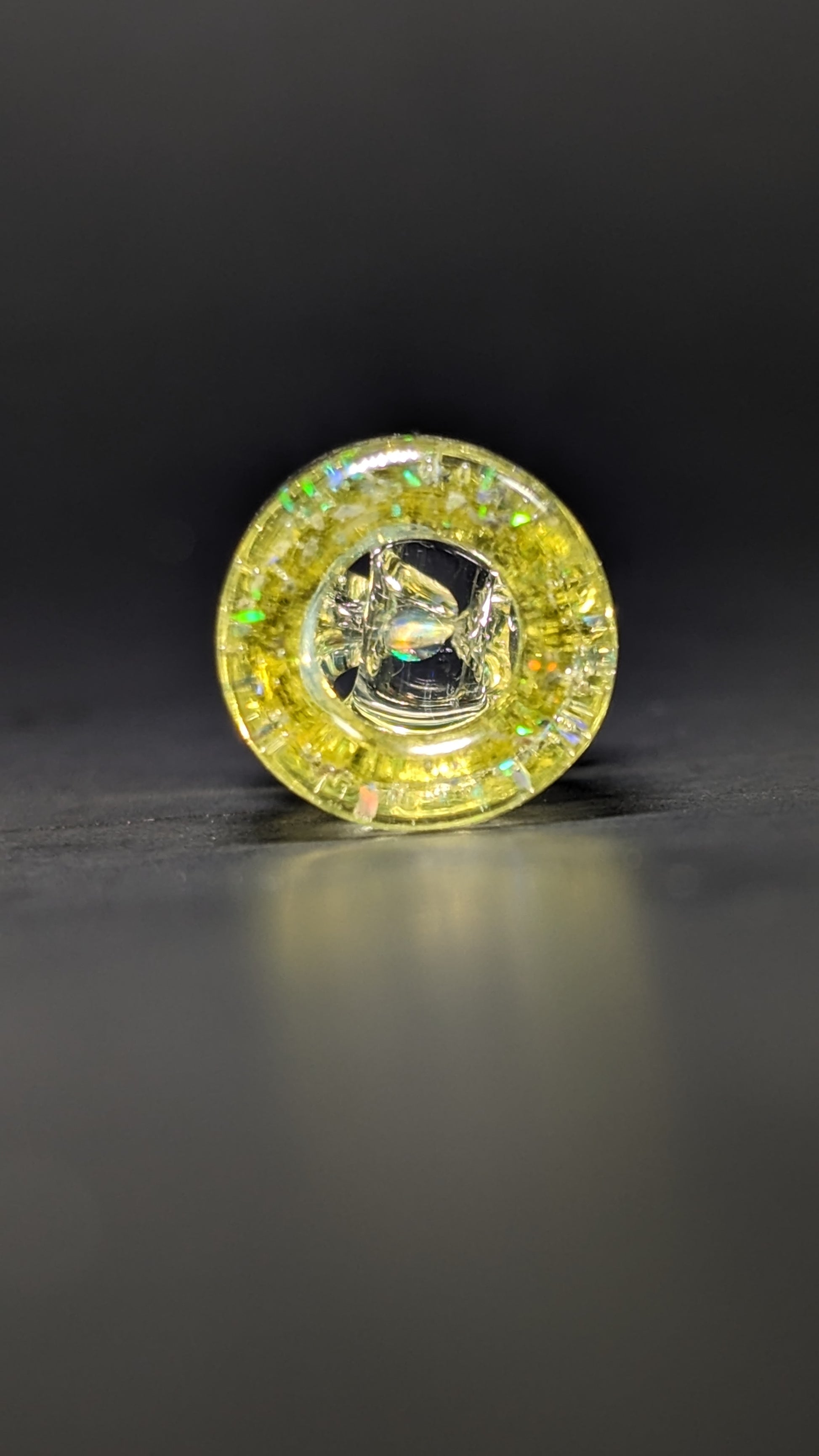 Built-in Opal tip from December 2023's drop featuring the "Grinchmas" color with an interior encased Opal for diffusion. This variant has a faceted opal as an extra heady touch, smoke in style with these one of a kind heady rolling tips!