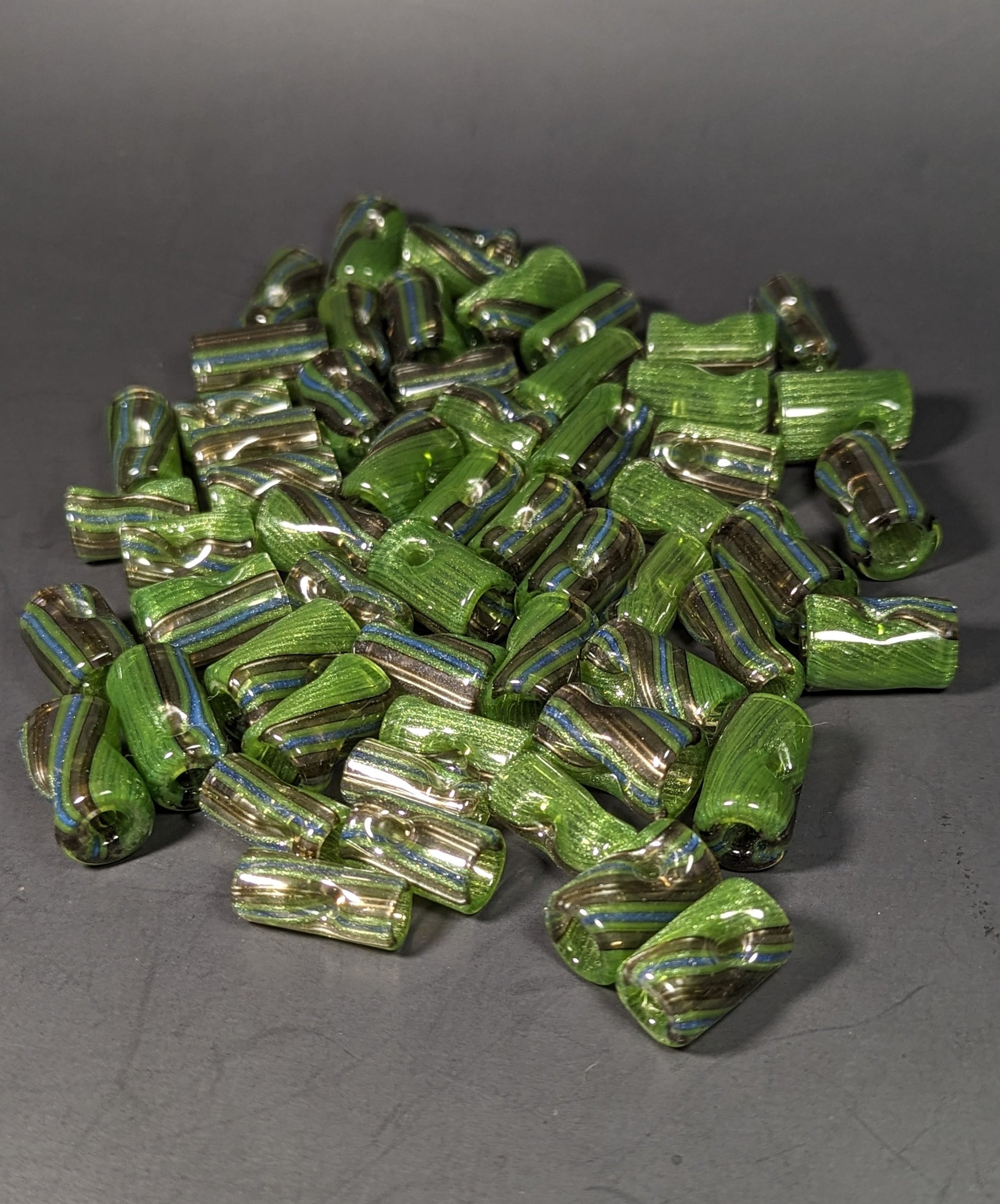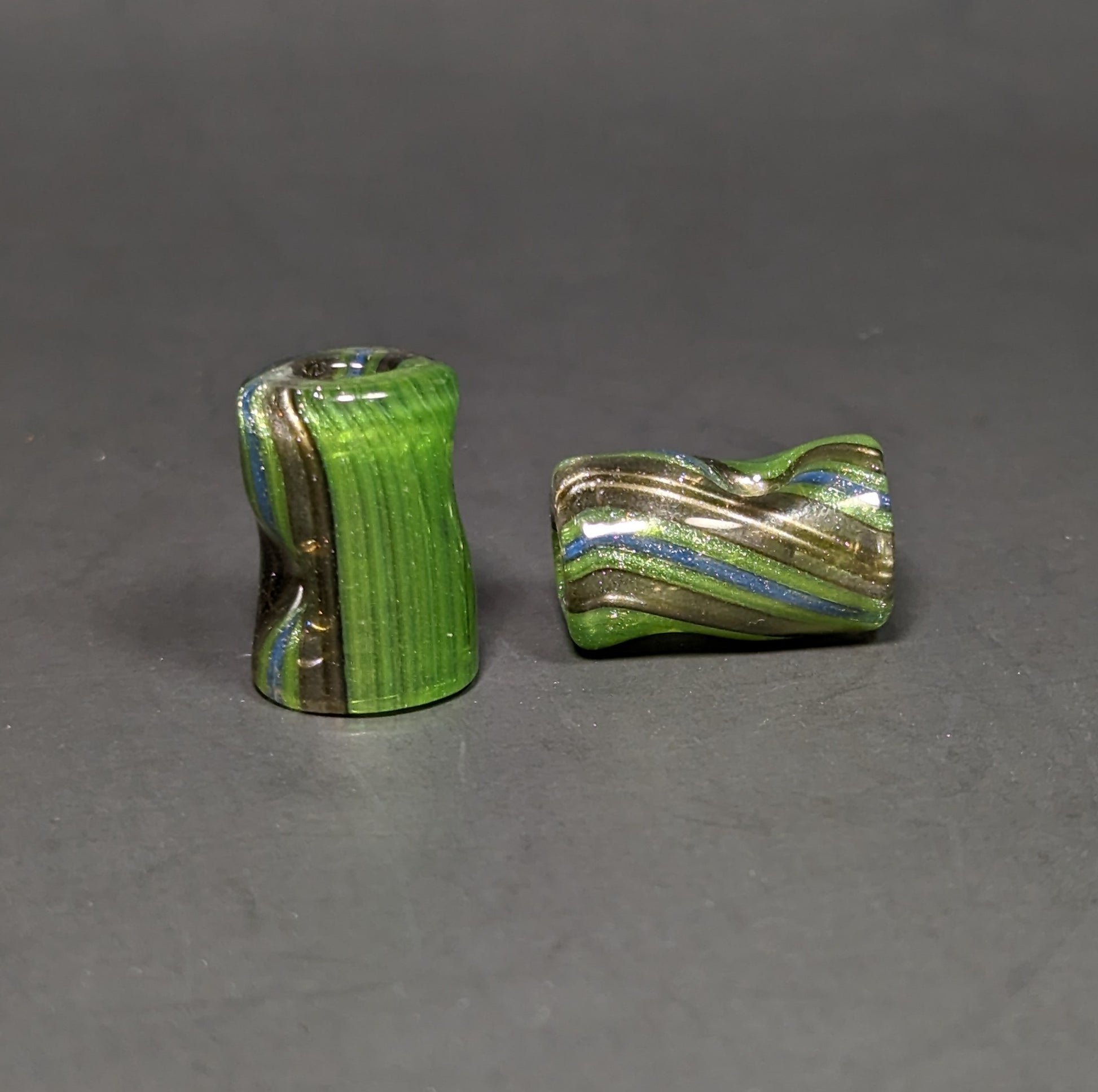 Varying sizes of Lined tubing tips made from Greasy Glass's recent tubing releases, light UV reactivity under blacklight.
