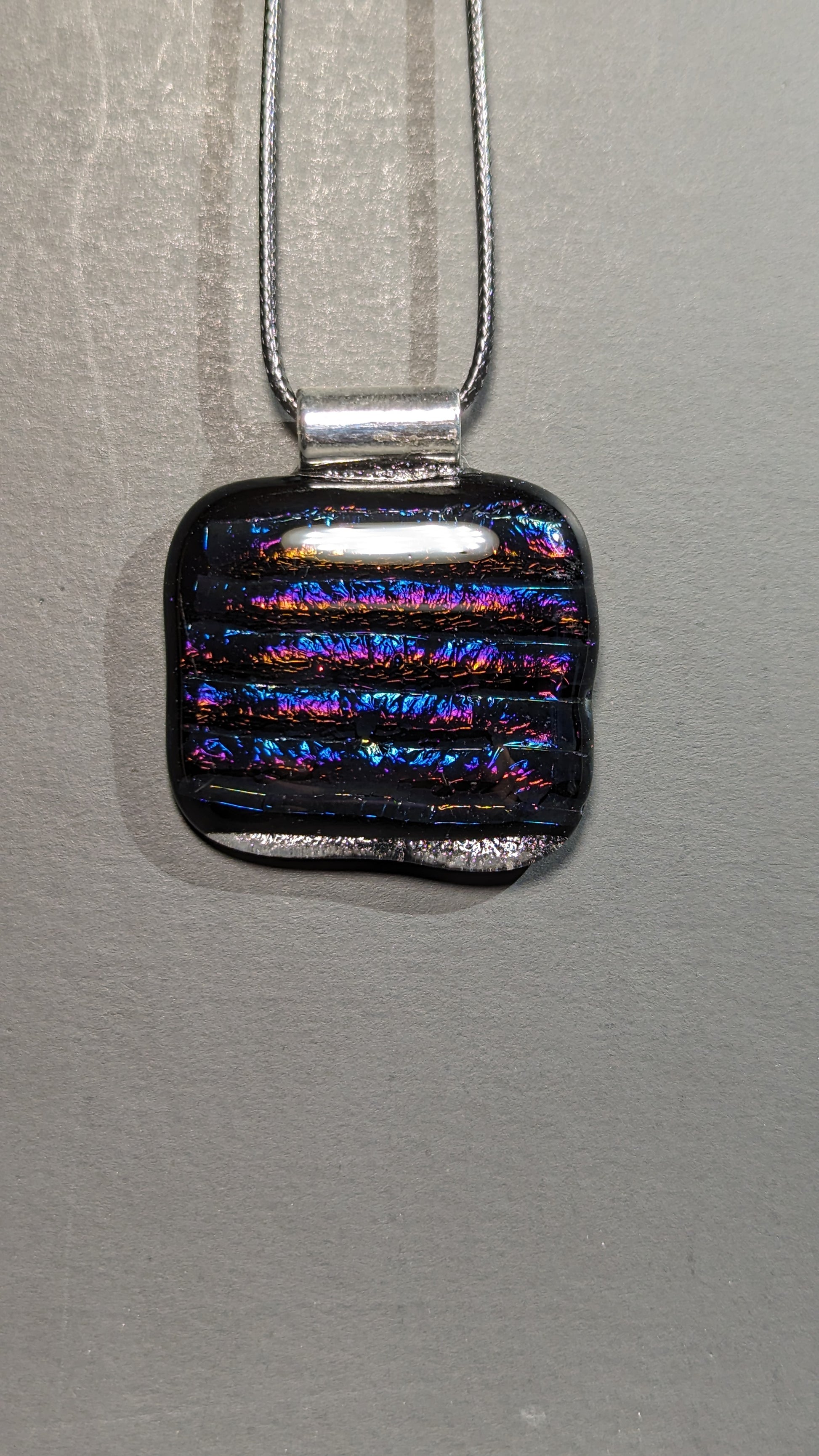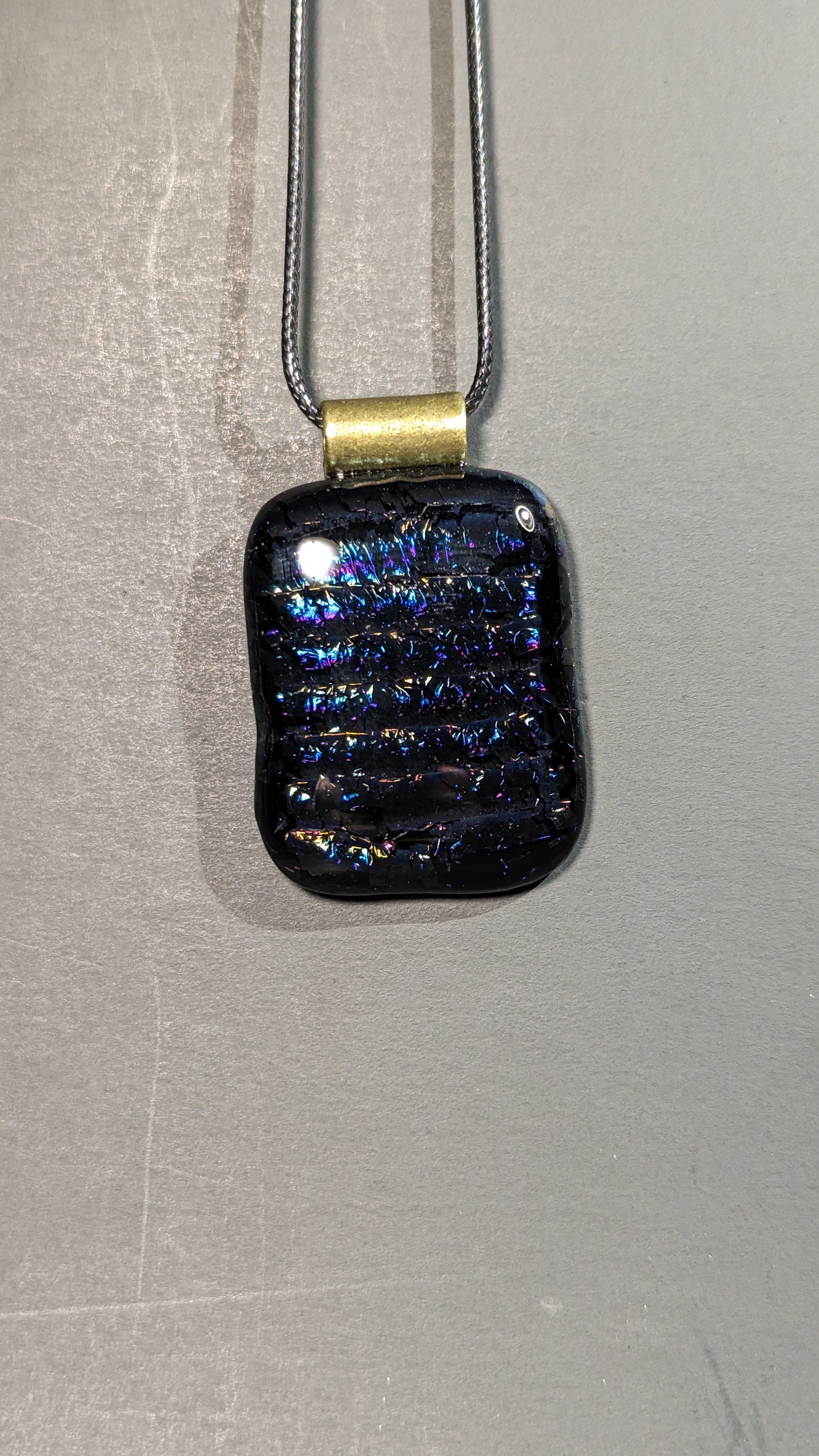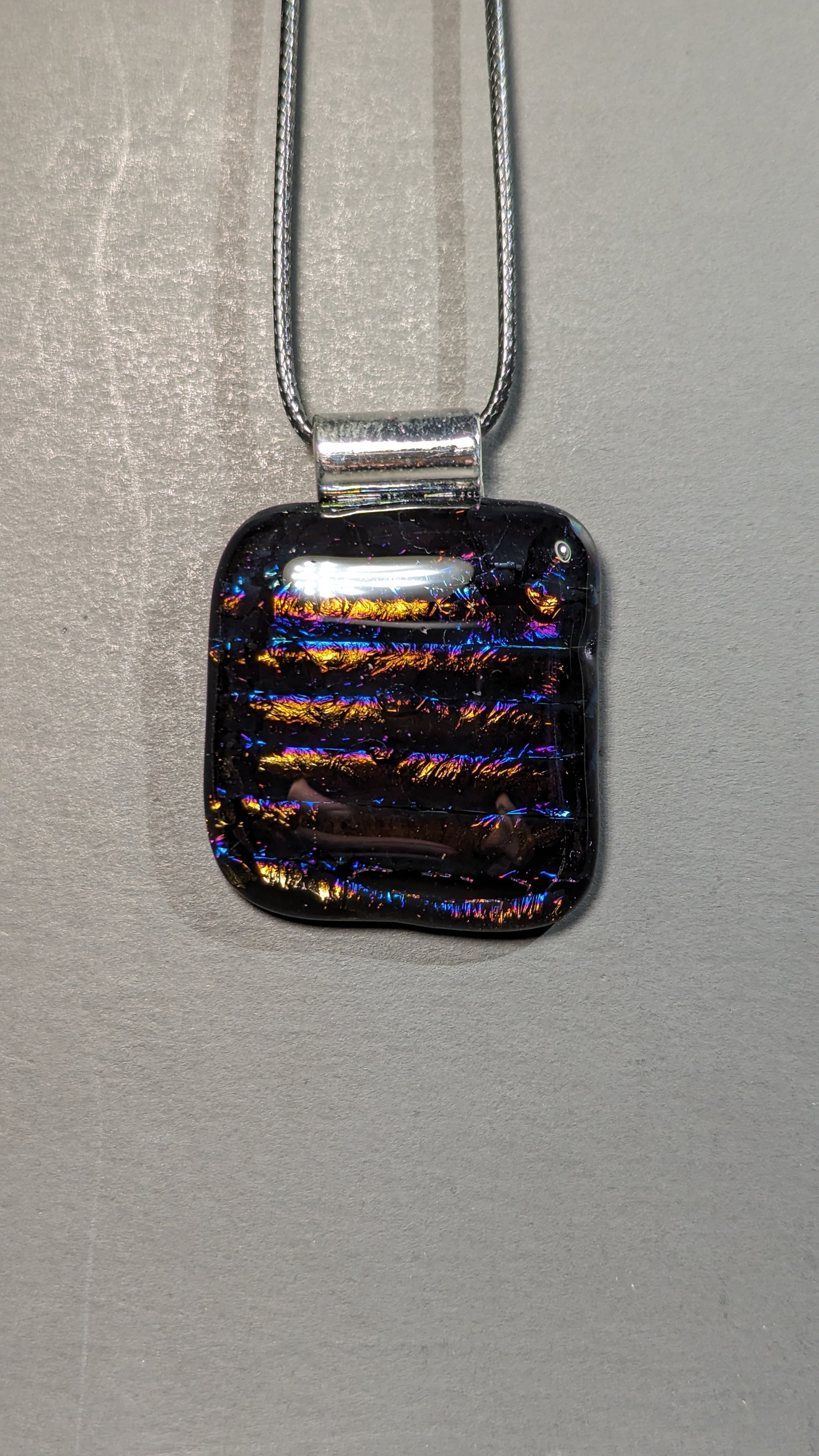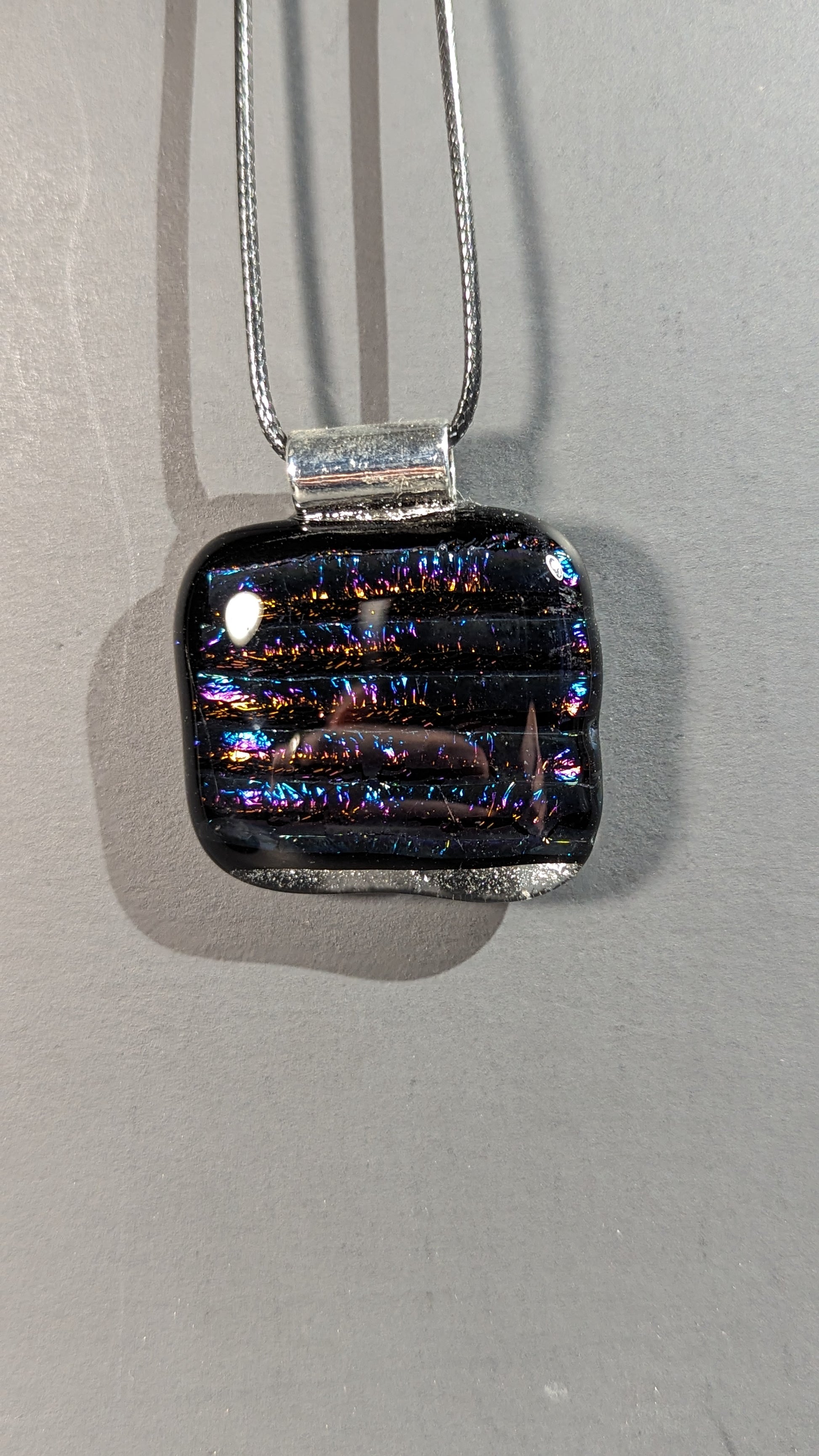 Fused glass pendants made from "Opal accordion" glass. Metals (dichro) of different colors shine through ranging from silvers+golds to rainbow blues, purples, greens. Each pendant is slightly different than the next and you can choose the one that fits you perfectly via the "style" options.