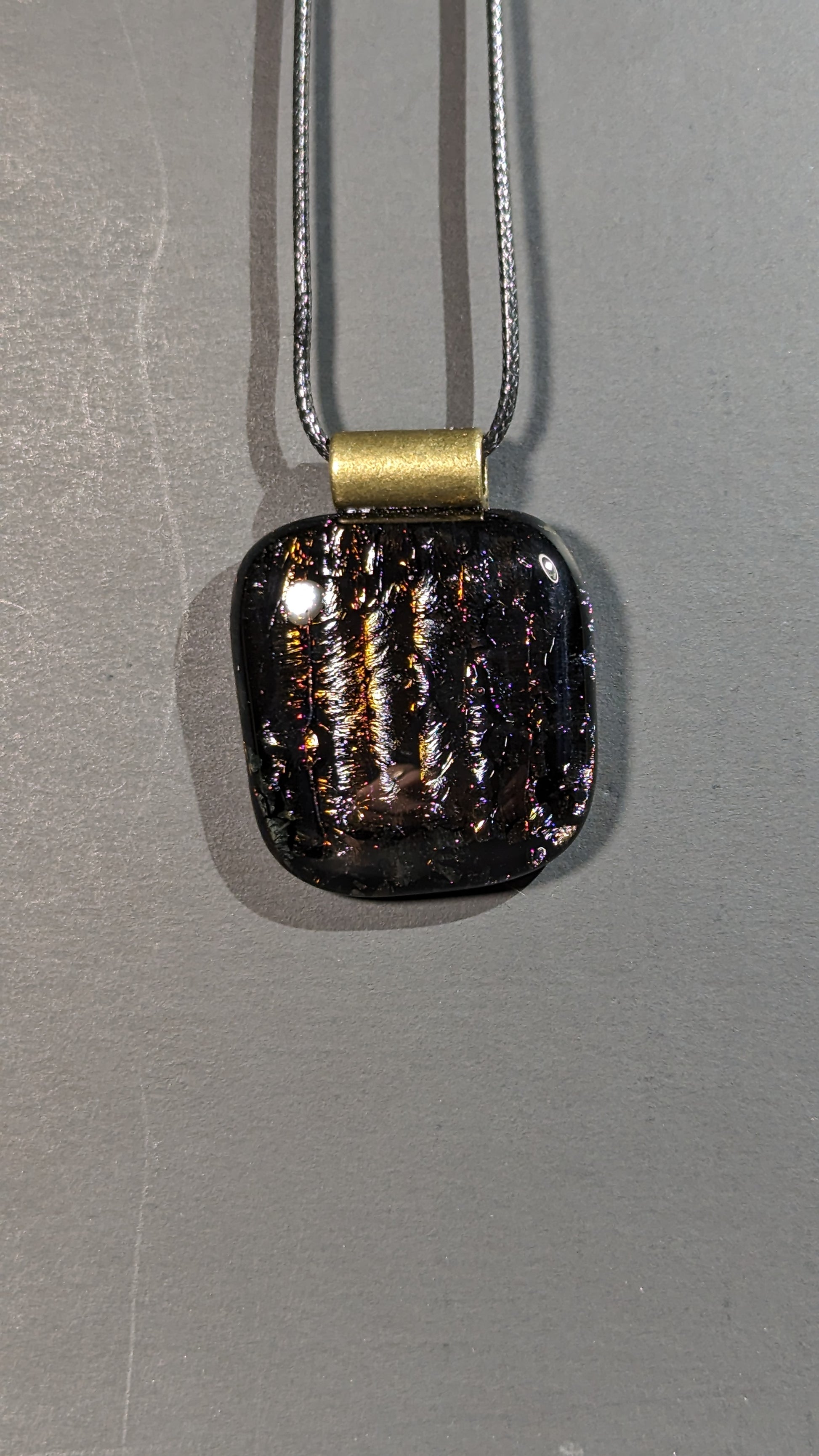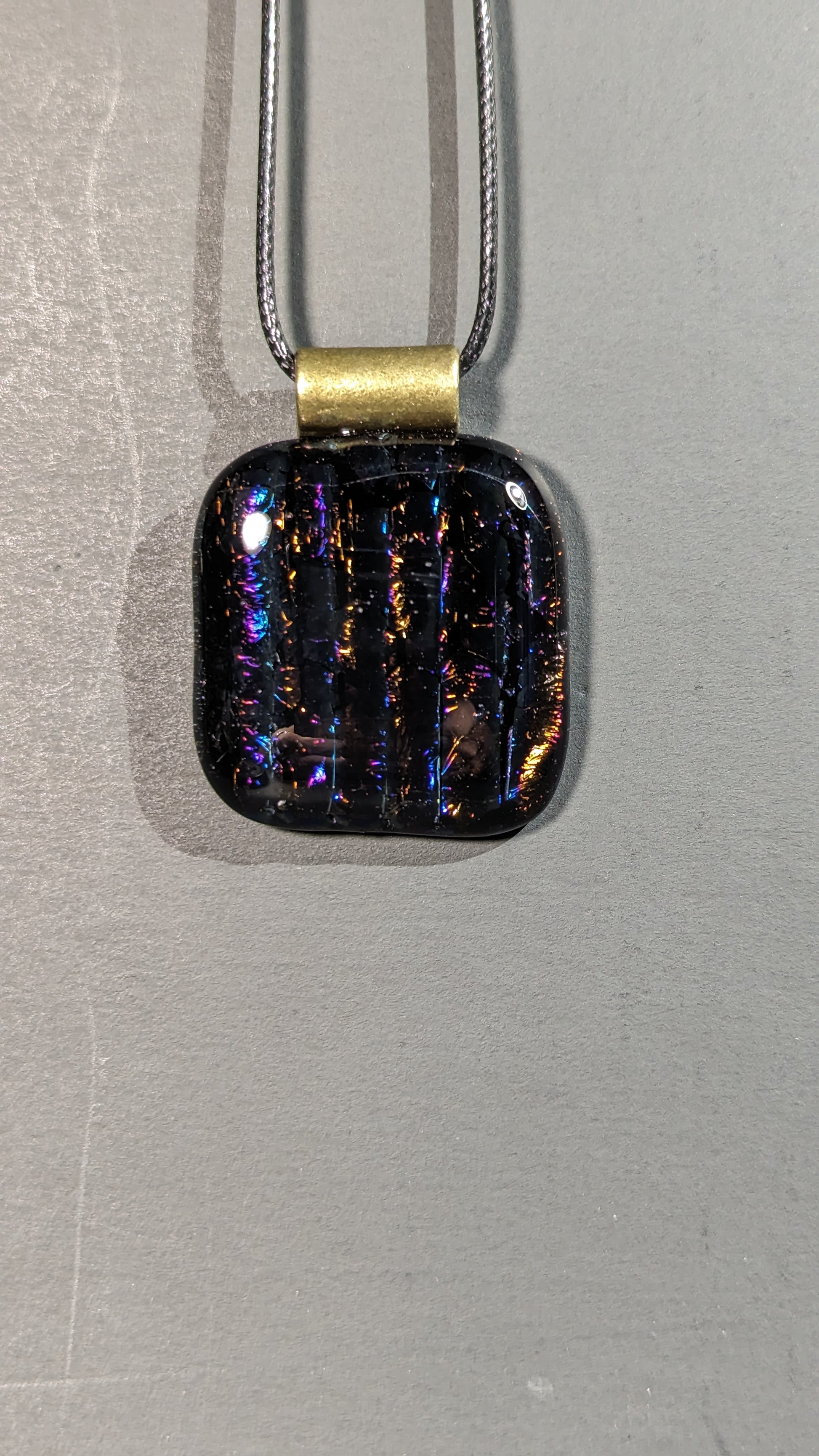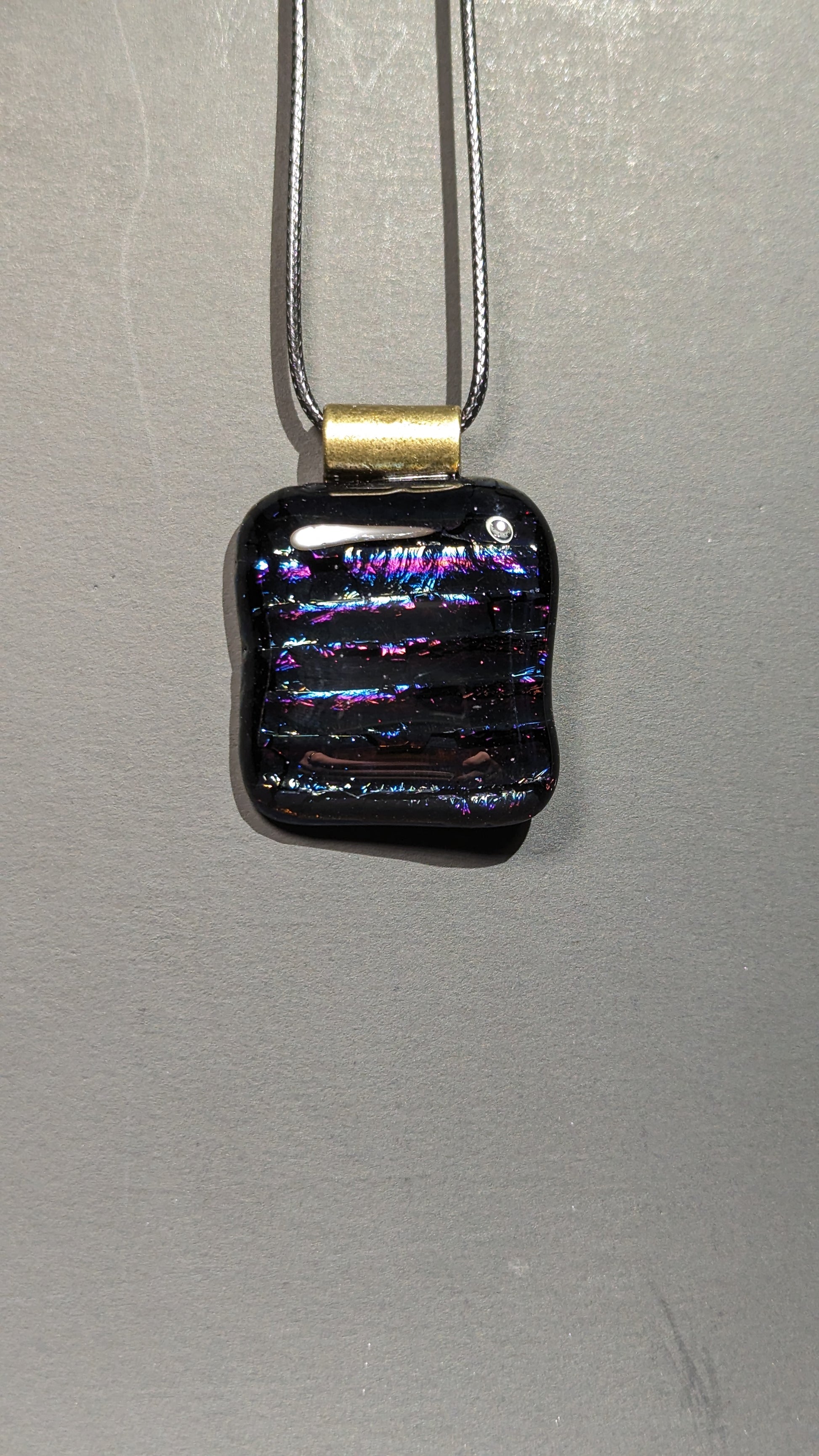 Fused glass pendants made from "Opal accordion" glass. Metals (dichro) of different colors shine through ranging from silvers+golds to rainbow blues, purples, greens. Each pendant is slightly different than the next and you can choose the one that fits you perfectly via the "style" options.