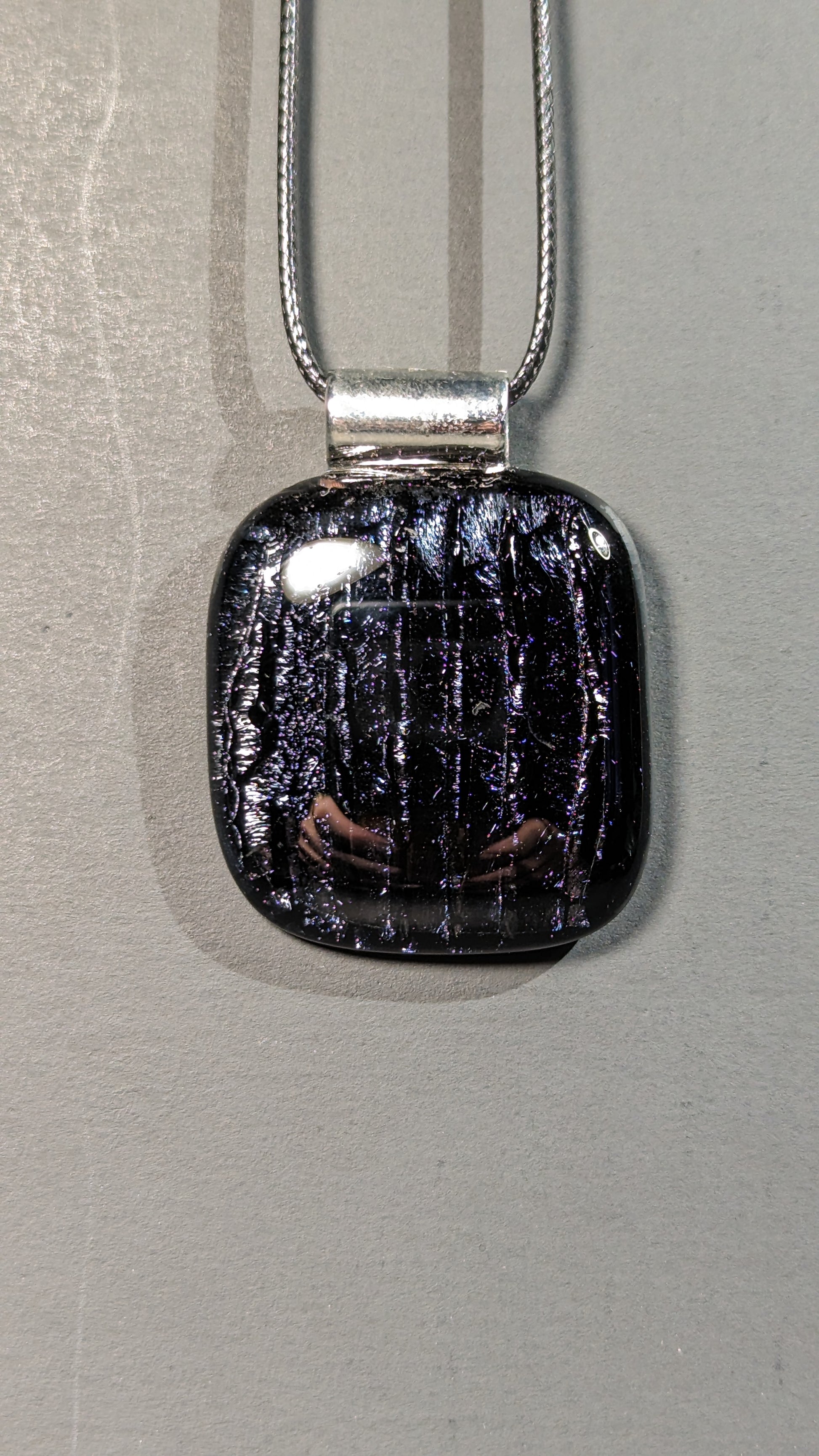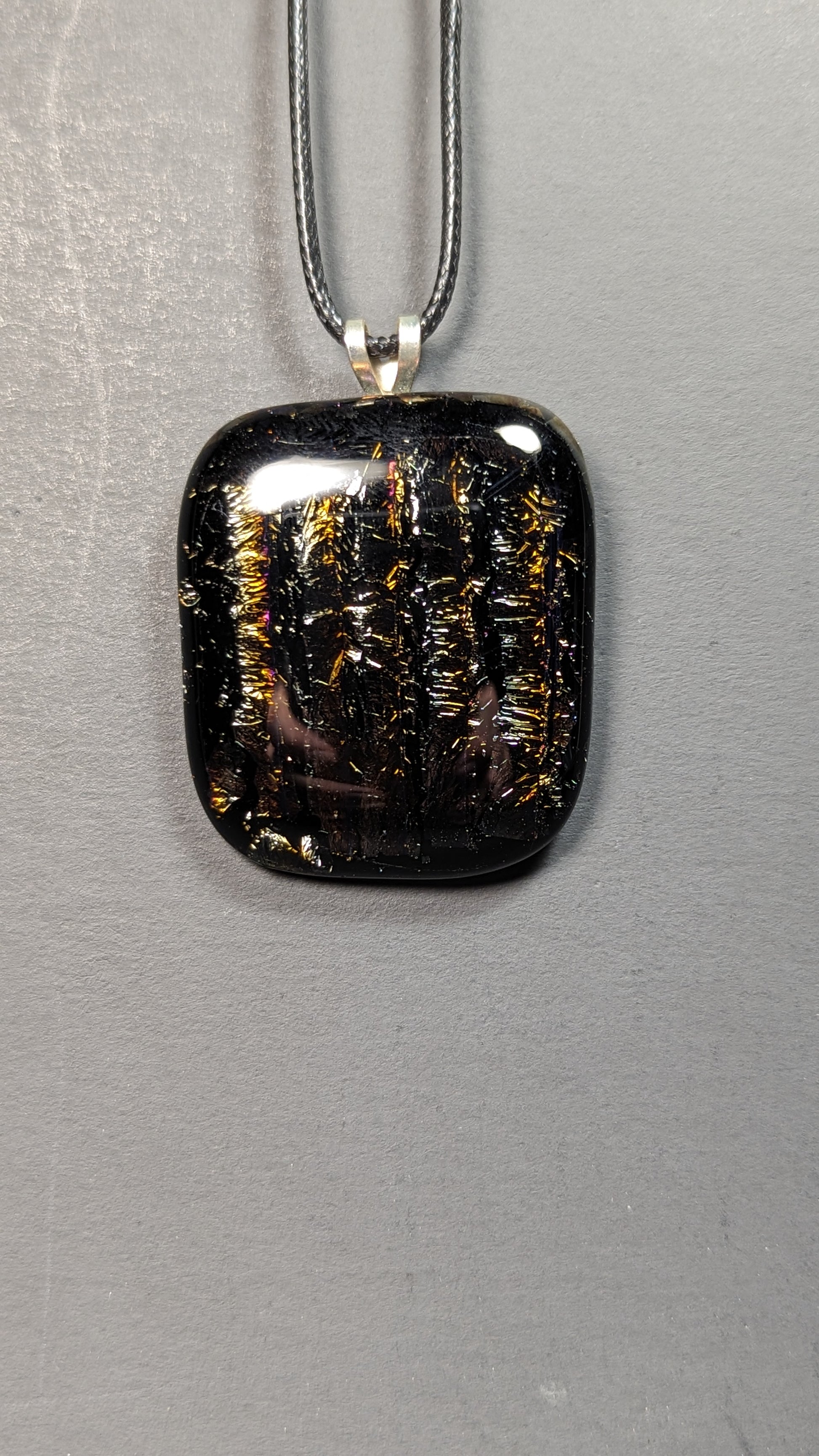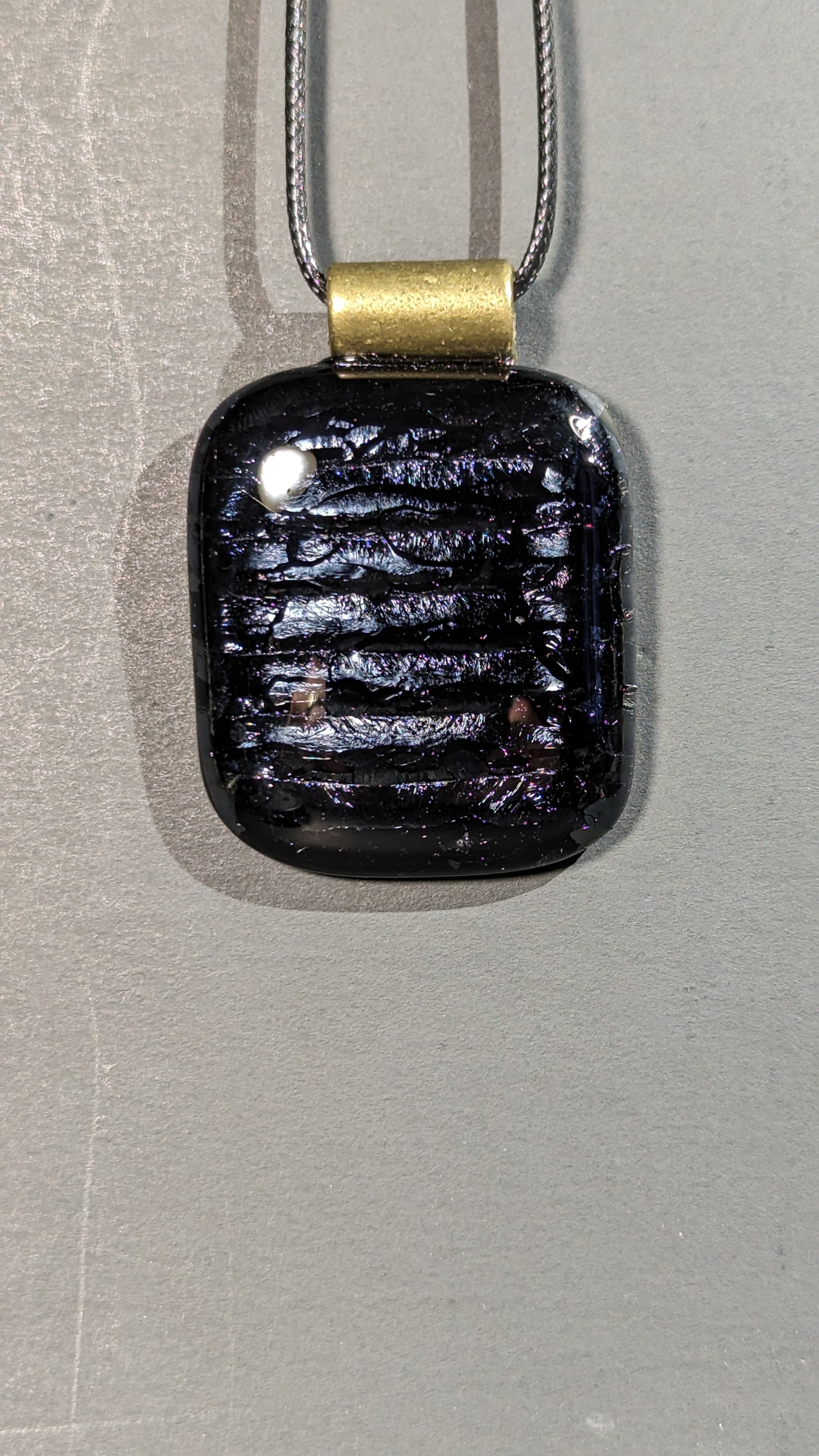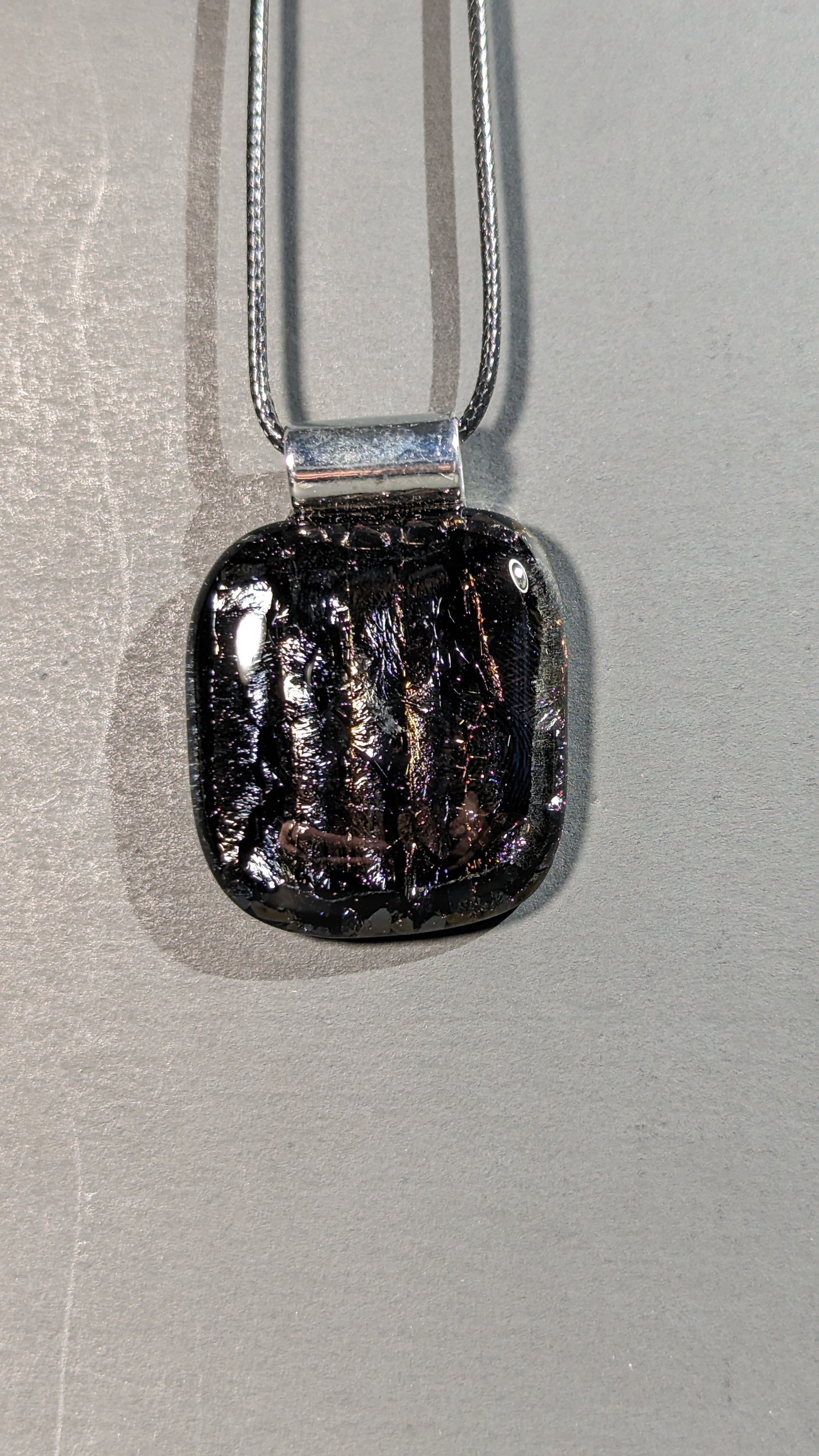 Fused glass pendants made from "Opal accordion" glass. Metals (dichro) of different colors shine through ranging from silvers+golds to rainbow blues, purples, greens. Each pendant is slightly different than the next and you can choose the one that fits you perfectly via the "style" options.