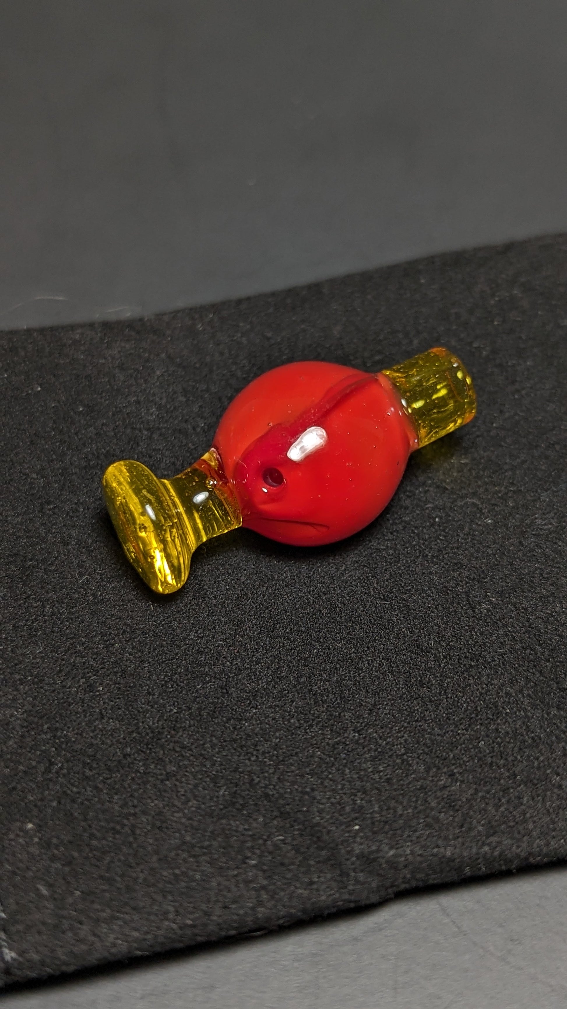 Glassblown borosilicate carb cap made from CFL reactive Terps and Red Crayon, roughly 18-21mm in size.