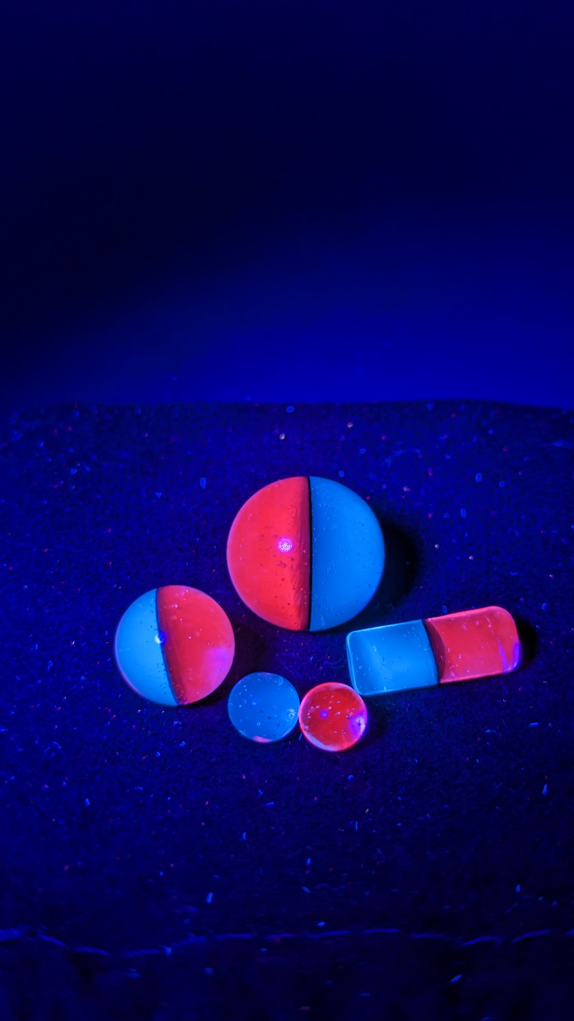 Blacklight reactive Terp slurper marble and pillar set made out of Lucy and BluV.